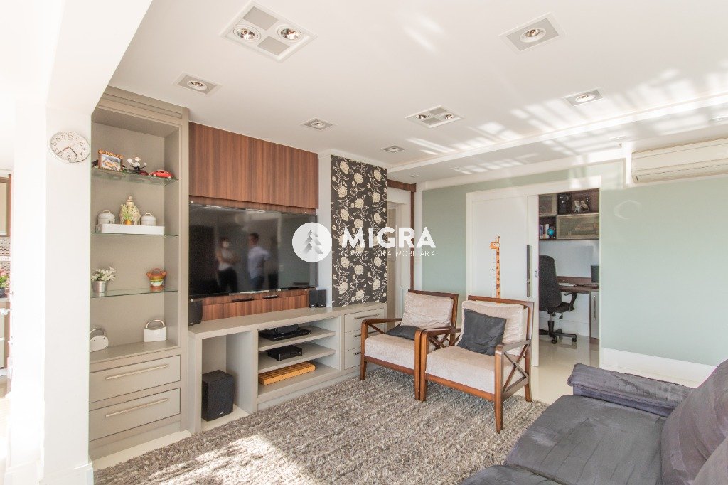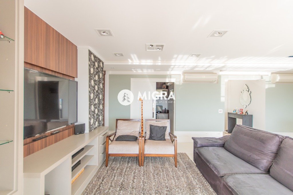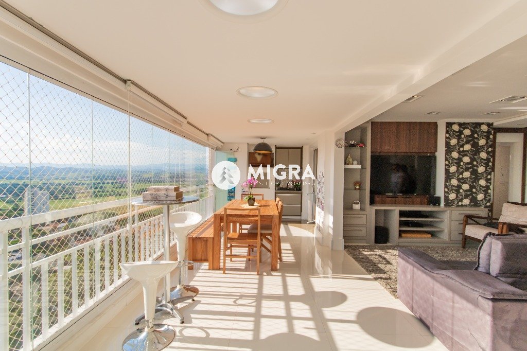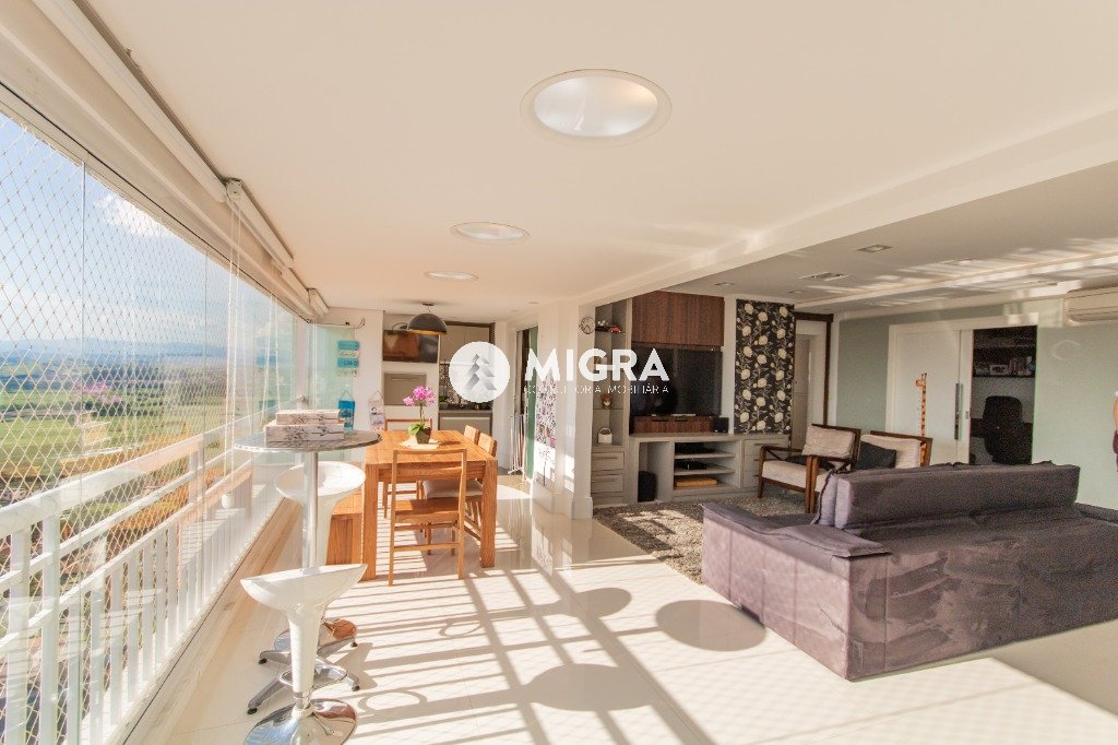 ampla sala com varanda gourmet fechada com cortina de vidro