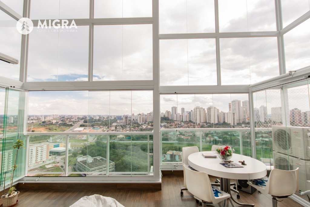 Apto lindo reformado com sala ampla com sacada ampliada e cortina de vidro com cortinas rolon blockout e com ar condicionado